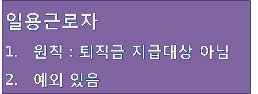 1. 원칙 : 일용근로자는 원칙적으로 퇴직금 지급대상에 해당되지 않음